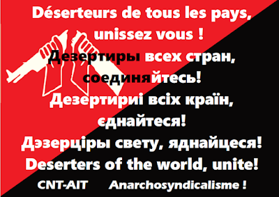 Al mismo tiempo, llamamos a los soldados de todas las facciones beligerantes a rechazar las órdenes de sus oficiales y a inutilizar la administración de todos los ejércitos capitalistas. Llamamos a los habitantes de los estados beligerantes a oponerse a la guerra y a sabotear en lo posible los esfuerzos bélicos de "sus" estados. Es necesario tomar el control de la sociedad y de los medios de producción y entregarlos a las asambleas obreras y populares. Sólo así podremos acabar realmente con todas las guerras y permitir la creación de las bases de un mundo verdaderamente libre y pacífico, sin relaciones sociales capitalistas, sin estados y sin destrucción imperialista.