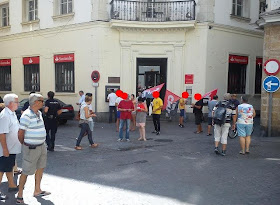 La mañana del jueves 26 de septiembre, y durante aproximadamente una hora, un grupo de afiliad@s de CNT-AIT, Tarragona ha protagonizado un piquete informativo frente a la sucursal del Banco Santander en la Rambla Nova de Tarragona.
